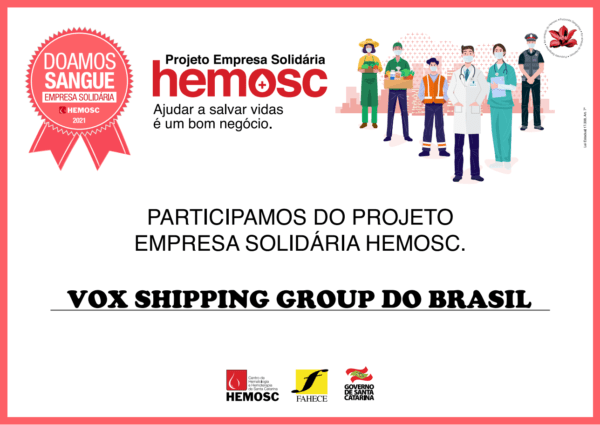 A VOX agradece a parceria com o HEMOSC e nos sentimos muito honrados com nosso Selo Solidário.